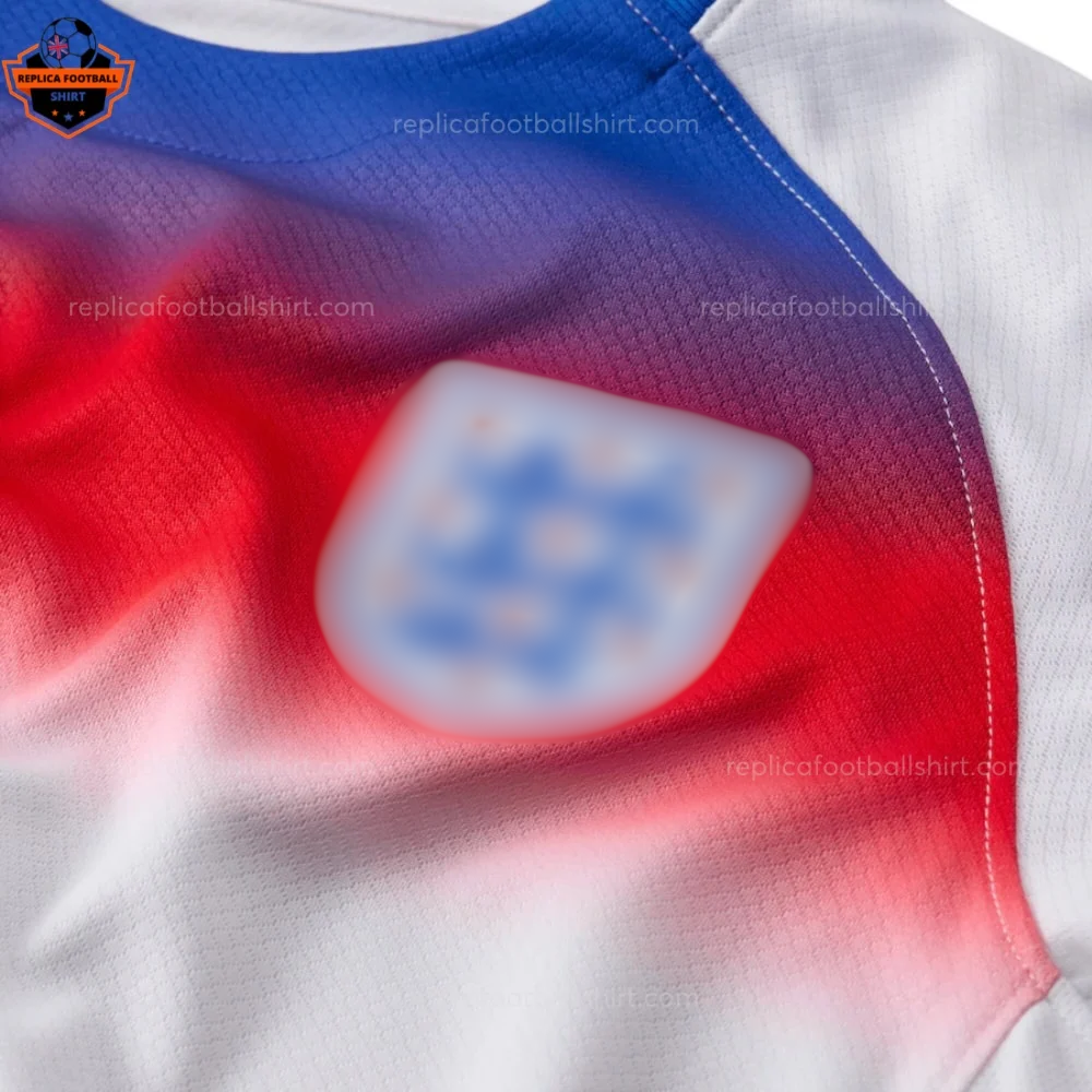 - Embodying national pride, the England Home Women’s Replica Football Shirt 2025 features a classic white base adorned with striking blue and red accents.