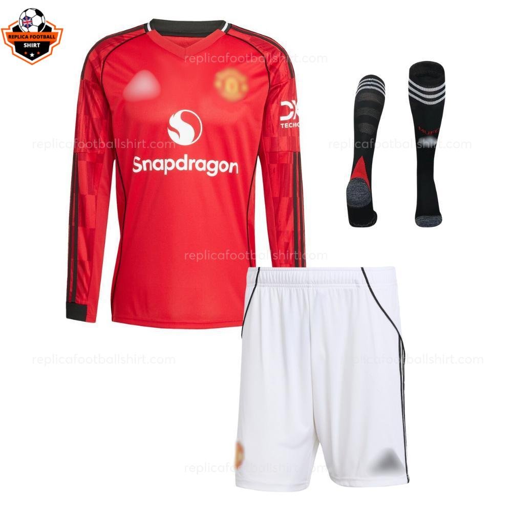 Description of Manchester United Home Kid Replica Football Kit Long Sleeve 25/26: