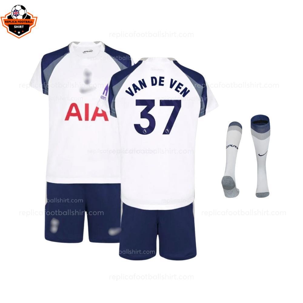 Description of Tottenham Hotspur VAN DE VEN 37 Home Kid Replica Football Kit 2025/26: