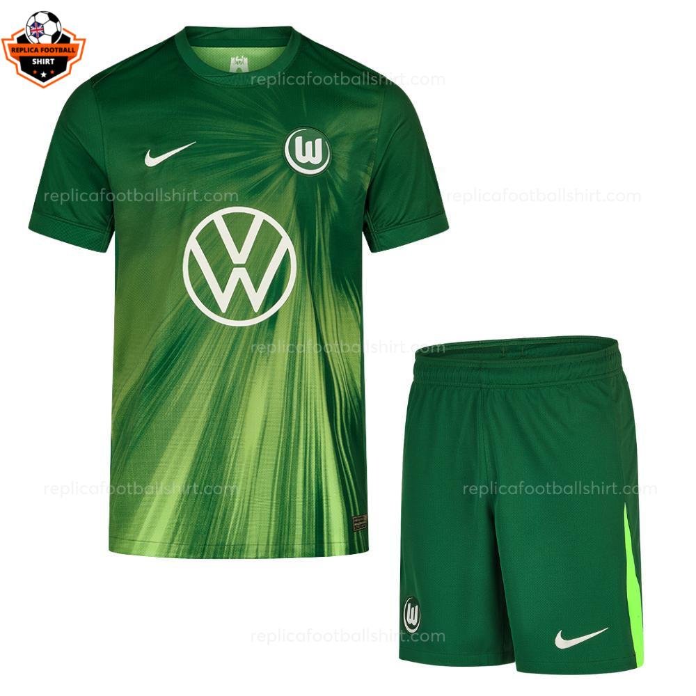 - The VFL Wolfsburg Home Kid Replica Football Kit 2023/24 showcases a vibrant green and white design, perfect for young fans who aspire to support their team.